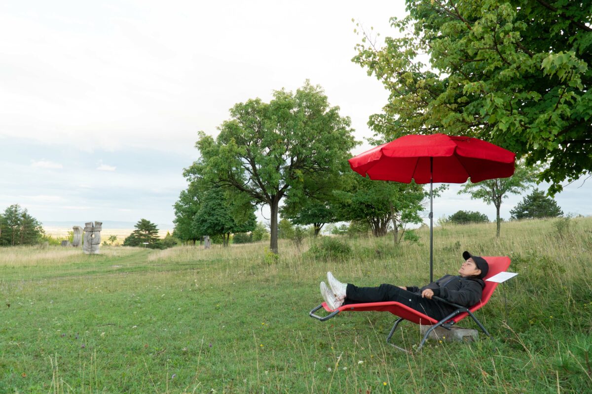 Diese interviewbasierte Arbeit setzt sich mit Erzählungen von Menschen auseinander, die einen leidenschaftlichen Bezug zum Gelände des Symposion Lindabrunn haben. Ihre Positionen werden zum Ausgangspunkt einer Installation im Freien, die sich diesem vielschichtigen Ort mit seinen unterschiedlichen Perspektiven und Bedeutungsebenen subtil und persönlich annähert. An ausgewählten Orten lädt eine Liege zum verweilen – es geht ums Zuhören, Hinschauen und Auf-sich-wirken-Lassen.